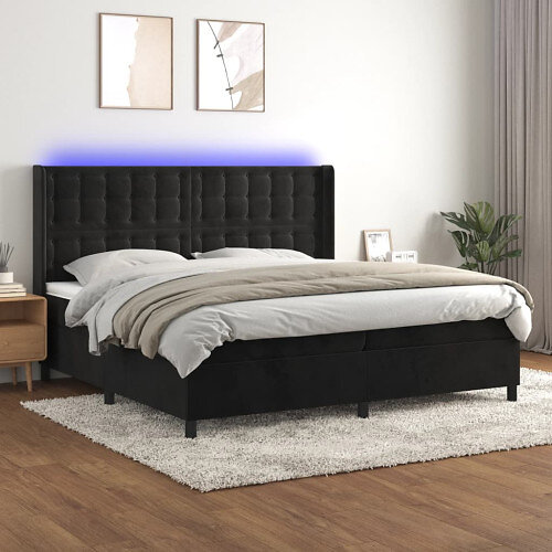 vidaXL Ramsäng med madrass & LED svart 200x200 cm sammet 3139825