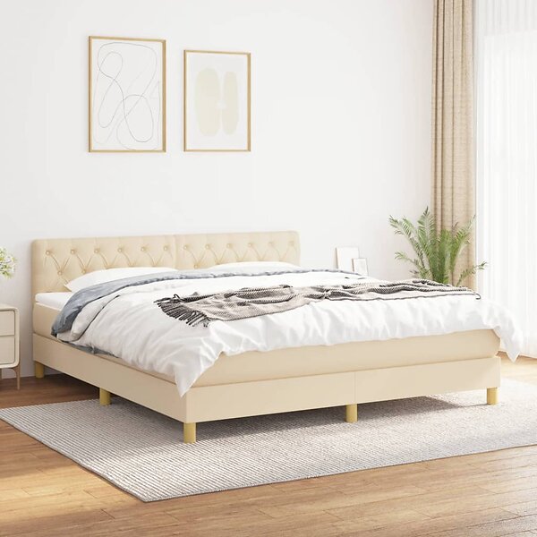 vidaXL Ramsäng med madrass gräddvit 160x200 cm tyg 3140870