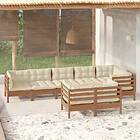 vidaXL Loungegrupp med dynor 8 delar honungsbrun massiv furu 3096505