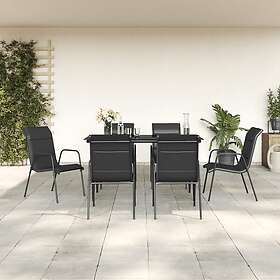 vidaXL Matgrupp för trädgården 7 delar svart stål och textilen 3200705