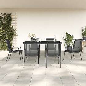 vidaXL Matgrupp för trädgården 7 delar svart stål och textilen 3200679