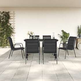 vidaXL Matgrupp för trädgården 7 delar svart stål och textilen 3200713