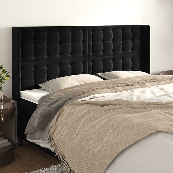 vidaXL Têtes de lit med kanter svart 203x16x118/128 cm sammet 3120082