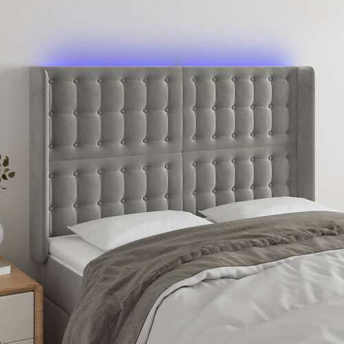 vidaXL Têtes de lit LED ljusgrå 147x16x118/128 cm sammet 3124530