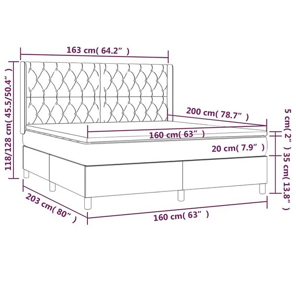 vidaXL Ramsäng med madrass & LED blå 160x200 cm tyg 3139131