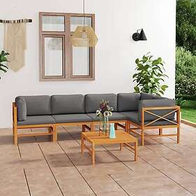 vidaXL Loungegrupp för trädgården med grå dynor 6 delar massiv teak 3087245