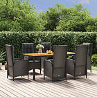 vidaXL Matgrupp för trädgården med dynor 7 delar svart konstrotting 3185072