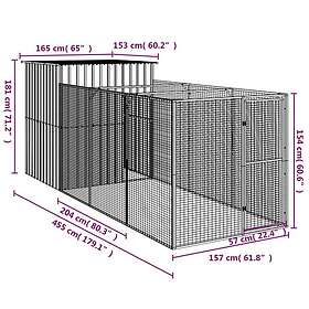 vidaXL Hundkoja med gård antracit 165x455x181 cm galvaniserat stål 3189099