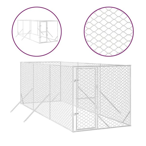 vidaXL Hundgård för utomhusbruk silver 2x6x2 m galvaniserat stål 3190452
