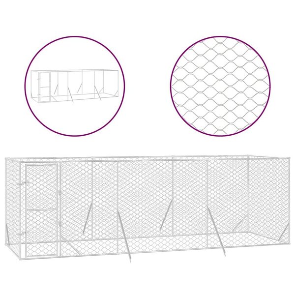 vidaXL Hundgård för utomhusbruk silver 6x2x2 m galvaniserat stål 3190459