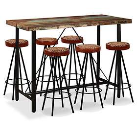 vidaXL Barmöbler 7 delar massivt återvunnet trä, äkta läder & kanvas 275147