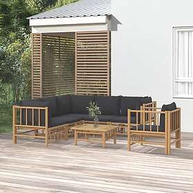 vidaXL Loungegrupp 7 delar mörkgrå dynor bambu 3155221