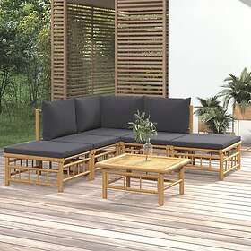 vidaXL Loungegrupp 6 delar mörkgrå dynor bambu 3155207