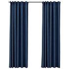 vidaXL Rideaux occultants avec crochets aspect lin 2 pièces bleu 140x225 cm