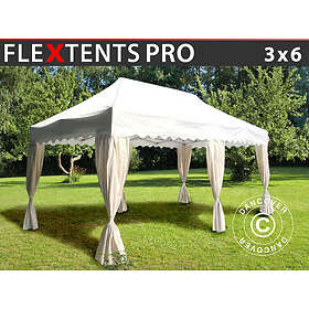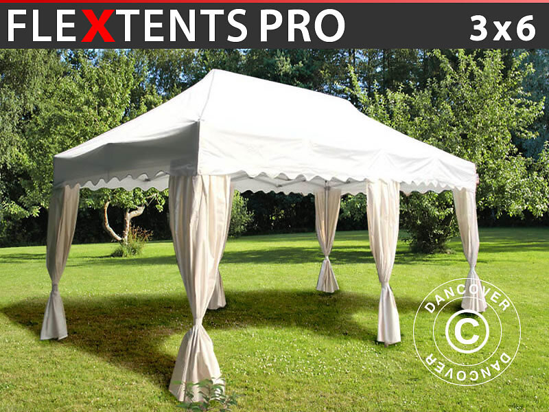 Dancover Snabbtält Depåtält Easy-up tält Eventtält Partytält FleXtents PRO "Wave" 3x6m Vit, inkl. 6 dekorativa gardiner