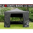 Dancover Snabbtält Depåtält Easy-up tält Eventtält Partytält FleXtents Basic v.3, 4x4m Svart, inkl. 4 sidor