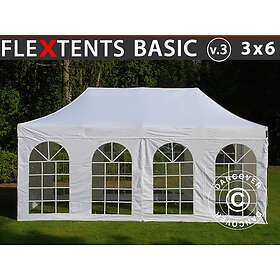 Dancover Snabbtält Depåtält Easy-up tält Eventtält Partytält FleXtents Basic v.3, 3x6m Vit, inkl. 4 sidor