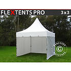 Dancover Snabbtält Depåtält Easy-up tält Eventtält Partytält FleXtents PRO Peak Pagoda 3x3m Vit, inkl. 4 sidor