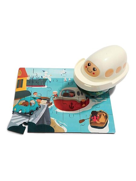 TopBright Toys Puzzle en bois Port avec bateau à vapeur 24 Pièces