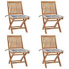 vidaXL Hopfällbara trädgårdsstolar med dynor 4 st massiv teak 3072821