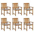 vidaXL Trädgårdsstolar med dynor 6 st massivt akaciaträ 3078165