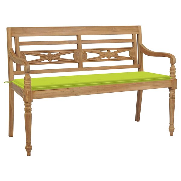 vidaXL Bataviabench med ljusgrön dyna 150 cm massiv teak 3062192