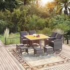 vidaXL Matgrupp för trädgården med dynor 9 delar konstrotting grå 3095526