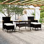 vidaXL Trädgårdsgrupp 5 delar konstrotting och härdat glas svart 3058354