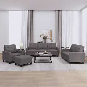 vidaXL Soffgrupp med dynor 4 delar grå konstleather 3201345