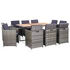 vidaXL Matgrupp för trädgården med dynor 11 delar konstrotting grå 46380