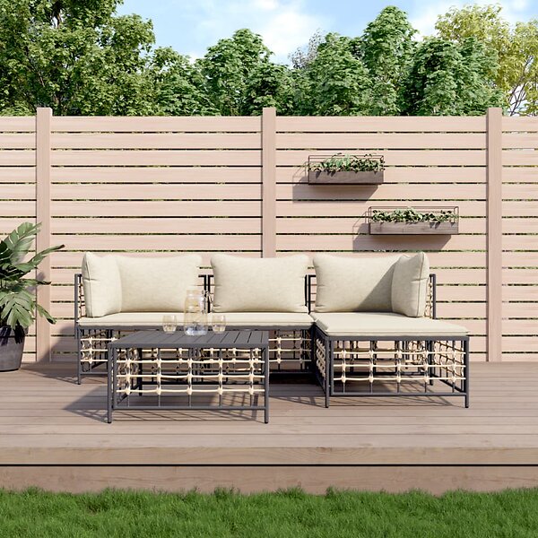 vidaXL Loungegrupp 4 delar med dynor antracit konstrotting 3186740