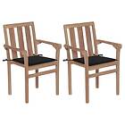 vidaXL Trädgårdsstolar 2 st med svarta dynor massivt teakträ 3062215