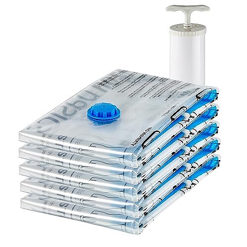 Amazon Basics Vakuumkompressionspåsar med handpump, medium, 5-pack