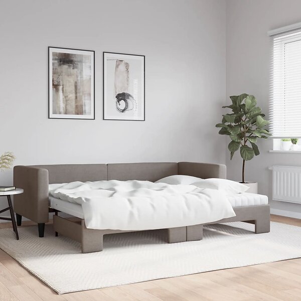 vidaXL Dagbädd med madrasser utdragbar taupe 80x200 cm tyg 3196594