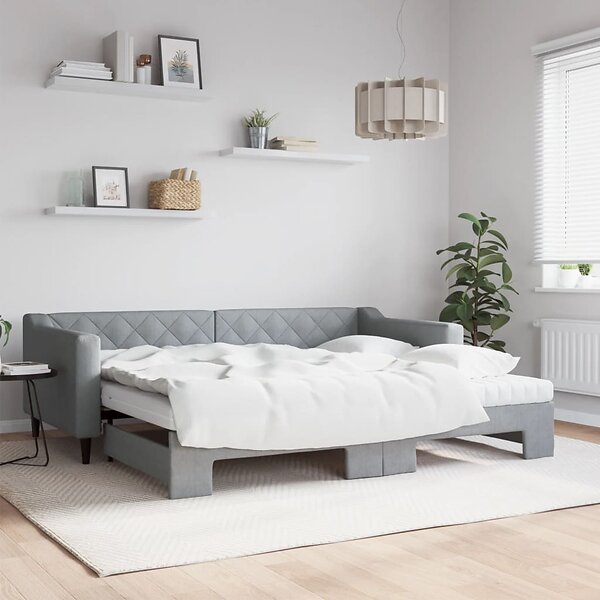 vidaXL Dagbädd utdragbar med madrasser ljusgrå 90x200 cm tyg 3197444