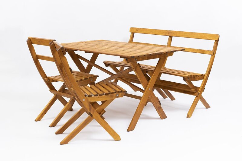 Wood Furniture Utomhusmatgrupp, bord 2 chairs fällbar bänksoffa, vit Laxo Brun