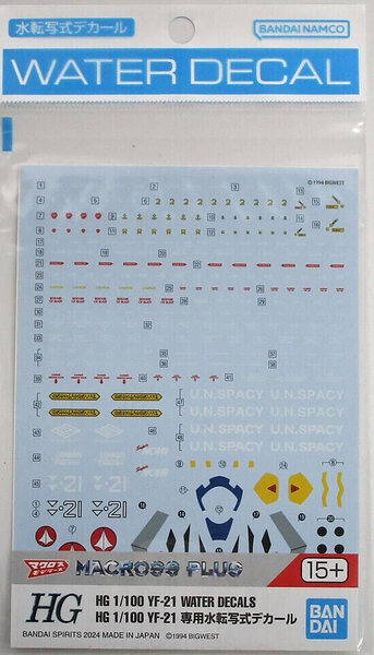 Macross Hg 1/100 Yf-21 Water Decals Model Kit