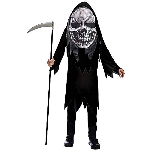 Amscan 9907122 – barndräkt Grim Reaper, rock, mask, sensenmann, stort huvud, skelett, temafest, karneval, halloween
