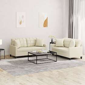 vidaXL Soffgrupp med kuddar 2 delar gräddvit konstleather 3201369