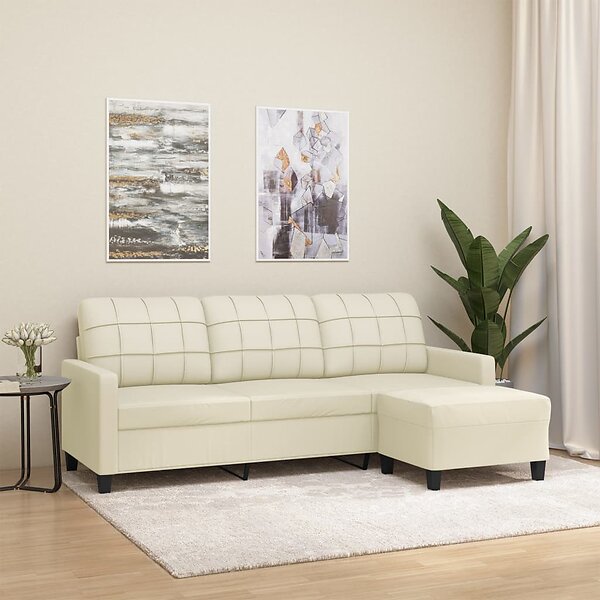 vidaXL 3-placessoffa med fotpall gräddvit 180 cm konstläder 3201015