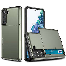 Inskal Samsung Galaxy S21 FE (5G) Tåligt Skal med Korthållare Hybridplast Mörkgrön