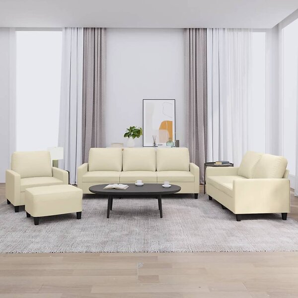 vidaXL Soffgrupp med dynor 4 delar gräddvit konstleather 3201404