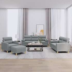 vidaXL Soffgrupp med kuddar 4 delar ljusgrå tyg 3201560