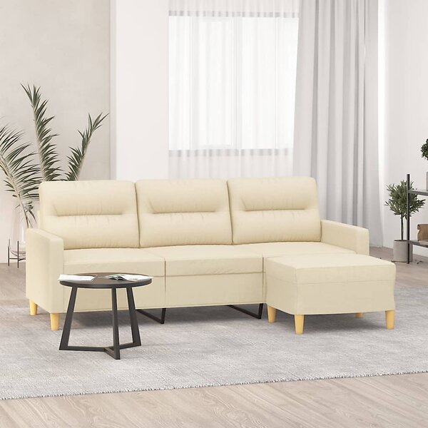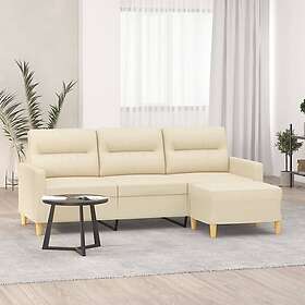 vidaXL 3-placessoffa med fotpall Gräddvit 180 cm tyg 3201075
