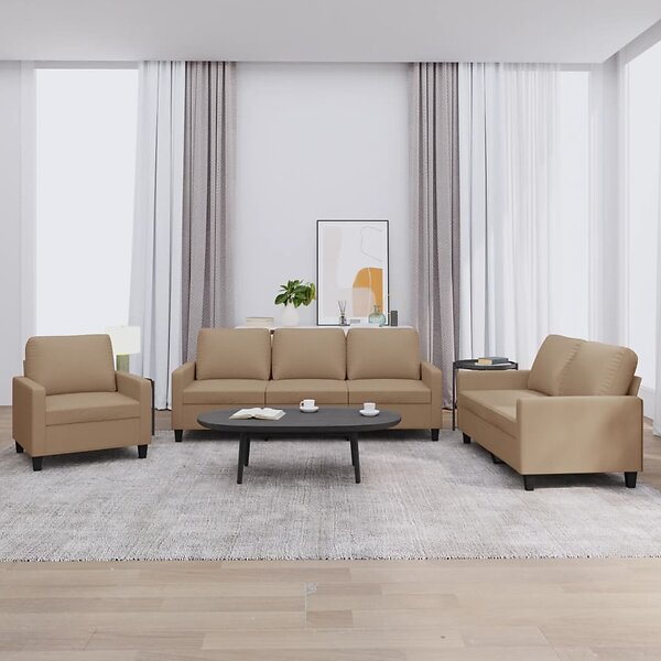 vidaXL Soffgrupp med dynor 3 delar cappuccino konstleather 3201402