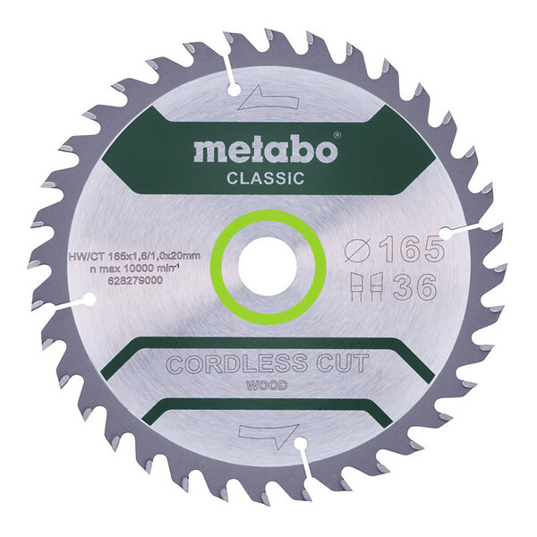 Metabo Sågblad "cordless cut wood classic", 165x20 Z36 WZ 15° /B
