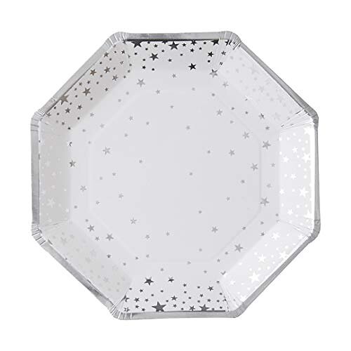 Ginger Ray Papperstallrikar Oktagon Stjärnor Silver Metallic 8-pack