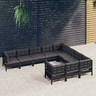 vidaXL Loungegrupp för trädgården med dynor 10 delar svart massiv furu 3096999