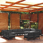 vidaXL Loungegrupp för trädgården med dynor 12 delar svart massiv furu 3097227