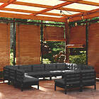vidaXL Loungegrupp för trädgården med dynor 11 delar svart massiv furu 3097215
